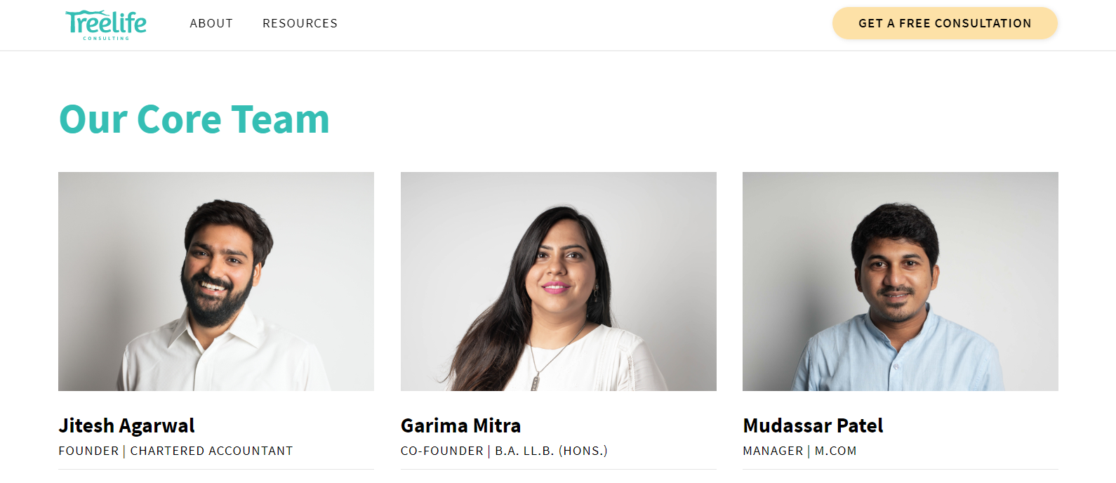Portraits for the team page of a startup called Treelife